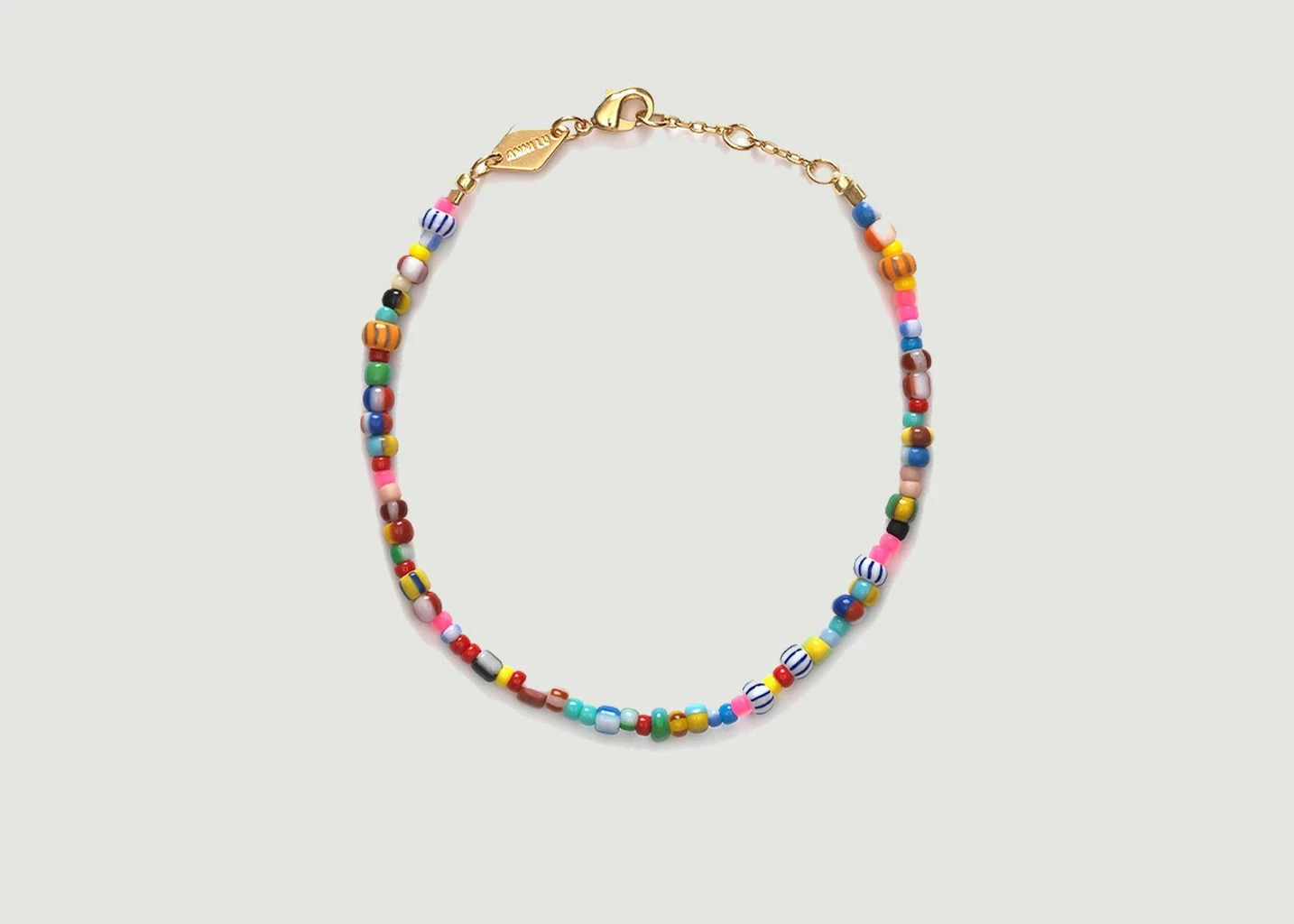 Bracelet made of 18 carat gold-plated brass and multicoloured glass beads, adjustable from 15.5 cm to 18 cm. An Alaia is a classic Hawaiian surfboard, so this bracelet signed Anni Lu is a tribute to casual evenings on the beach and surfing the waves.
