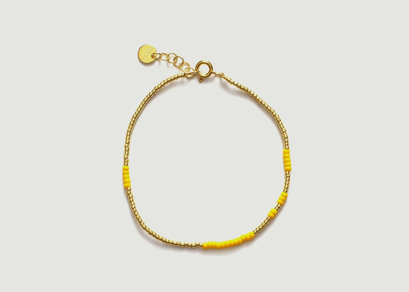 Brass bracelet plated with 18 carat gold: • set with gold and yellow glass beads • adjustable hook closure from 15.5 to 18 cm • medallion with logo