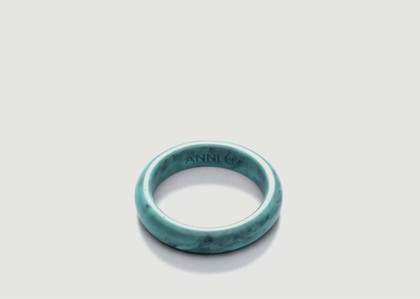 Turquoise effect resin ring : • classic ring shape • brand name engraved on the inside • width: 3-3,5 cm • size S/M = sizes 50-51; size M/L = sizes 53-54