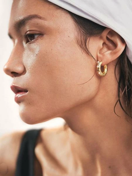 A twist on a classic style, the Gem In A Hoop Earrings by Anni Lu have an organic texture and shape. The special earrings are encrusted with pearls and gemstones, suited for daytime and evening accessorising. Gold plated hoop earrings Pearl and stone detail Hoop 20mm Composition: Brass with 18kt gold plating. Detailed in Cubic Zirconia Stones and Pearls.