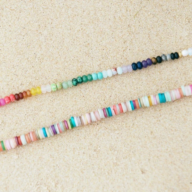 REBECCA’S NOTES Sit back and relax with this fun and playful holiday necklace. It’s sure to add a pop of colour to your time in the sun Crafted in Brass with 18ct Gold Plating + E Coating Detailed in Dyed Shell Discs Necklace adjusts from 39.5 – 43 cm Finished with a Lobster Clasp and a Cultured Freshwater Rice Pearl The perfect holiday is about relaxing, discovering new tastes, and having great adventures, the Anni Lu Holiday collection embodies this to a T!