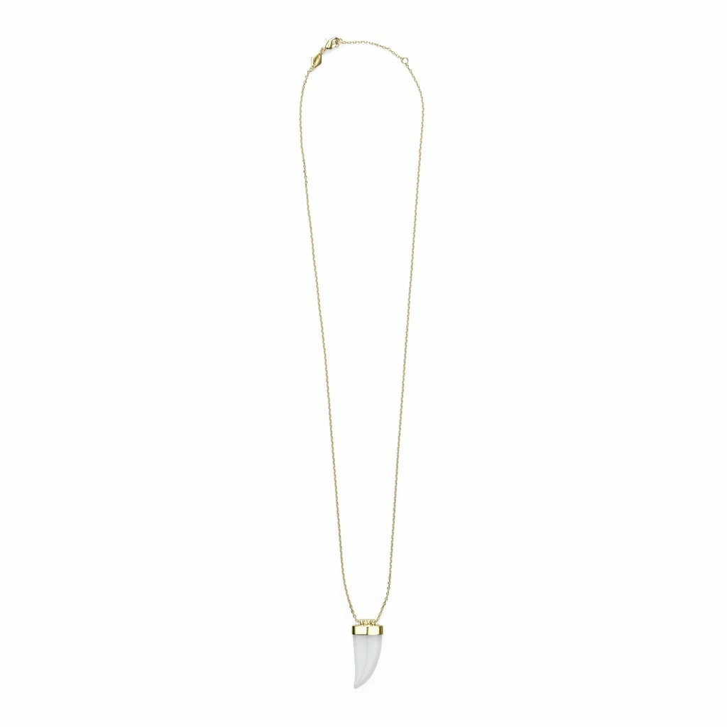 REBECCA’S NOTES The name Jaws may sound a bit scary to you, but for the daring surfers it is simply the name of a famous wave breaking on the north shore of Maui. 18k Gold Plated Brass and e Coating Resin Chain Length 54.5-58cm Pendant 27mm Wear with colourful beaded necklaces from the collection for a summery and playful vibe.