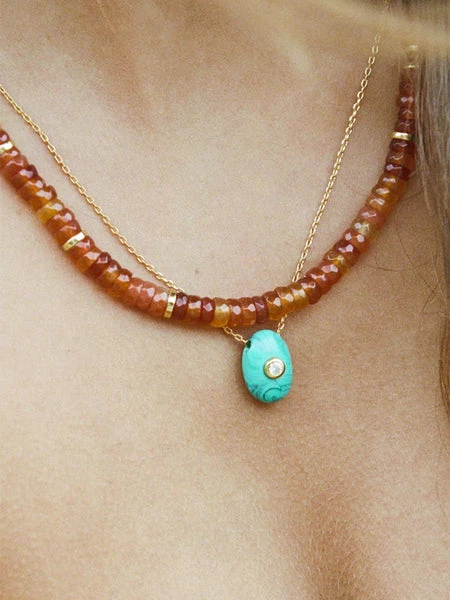 Adorned in Composite Turquoise pendant with a Cubic Zirconia detail, The Petit Pebble Necklace by Anni Lu. This necklace is complete with a gold chain and a lobster clasp, wear alone or stack with others from Anni Lu.