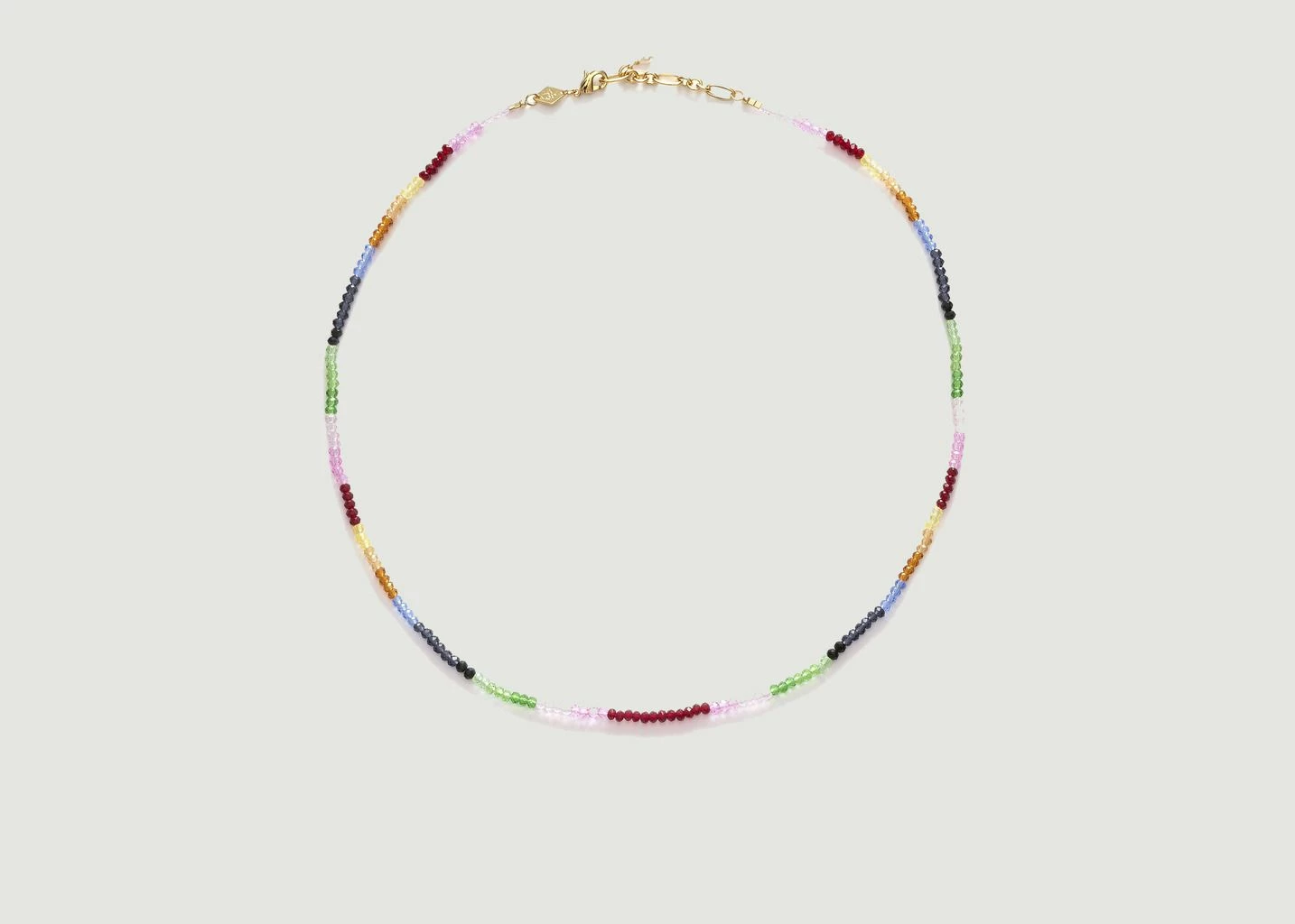 Adjustable necklace made of multicoloured glass beads. Length: 46 to 49 cm. This rainbow-coloured glass bead necklace is sure to become your favourite piece of jewellery! It will add fantasy to your casual outfits.