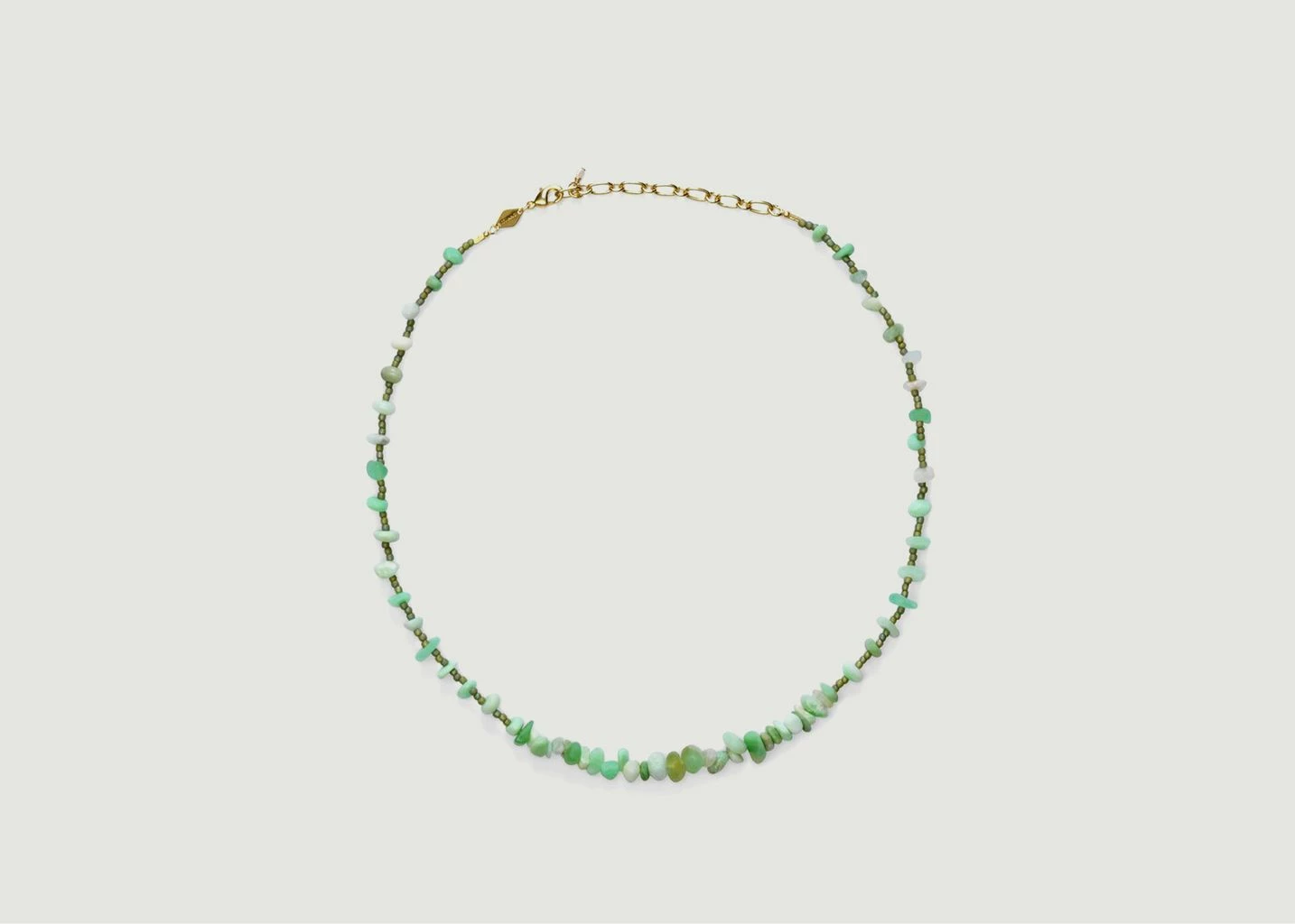 Short necklace in 18 carat gold plated brass, Chrysoprase stones, glass beads and cultured freshwater rice beads, adjustable hook and chain closure. Dimensions: 40-46 cm. Add a touch of whimsy to your looks with the Anni Lu Reef Necklace! This rather bohemian jewel will bring a subtle touch of color to your outfits.