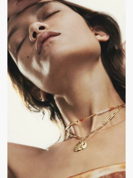 A timeless piece for your jewellery collection, the Shella Necklace by Anni Lu is stunning accessory to suit your holiday edit. Cast from a shell found on a beach in Bali, the round-shaped pendant has a textured surface, with sparkling crystal gemstones embedded within, hung from a robust gold-plated chain. Wear this necklace with your beach chic attire. Chain necklace with shell-shaped pendant Length 50cm, pendant 20mm Composition: Brass with 18kt gold plating. Detailed with cubic zirconia stones.