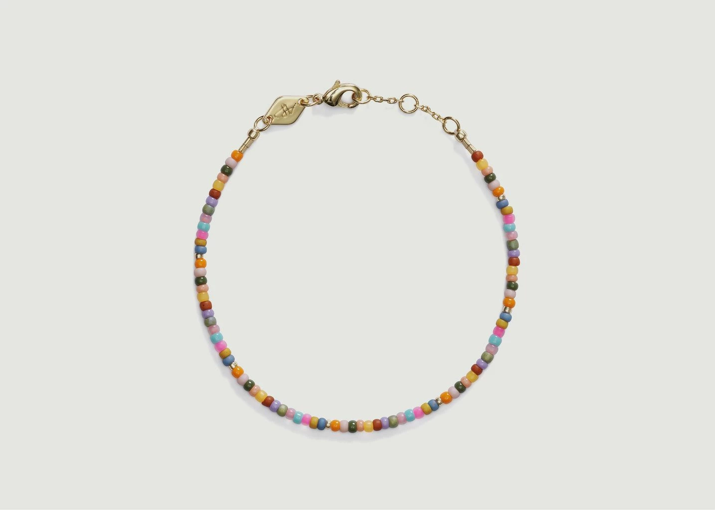 Brass bracelet plated with 18 carat gold: • set with multicolored glass beads • adjustable hook closure from 16 to 18 cm