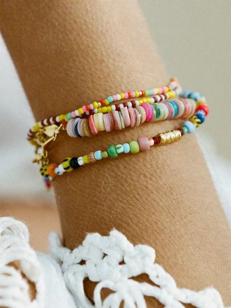 A playful bracelet for everyday-wear, the Tutti Frutti Bracelet by Anni Lu is made with colourful glass beads, and has an adjustable closure. Add some colour to your summer ensembles with this subtle beaded accessory.