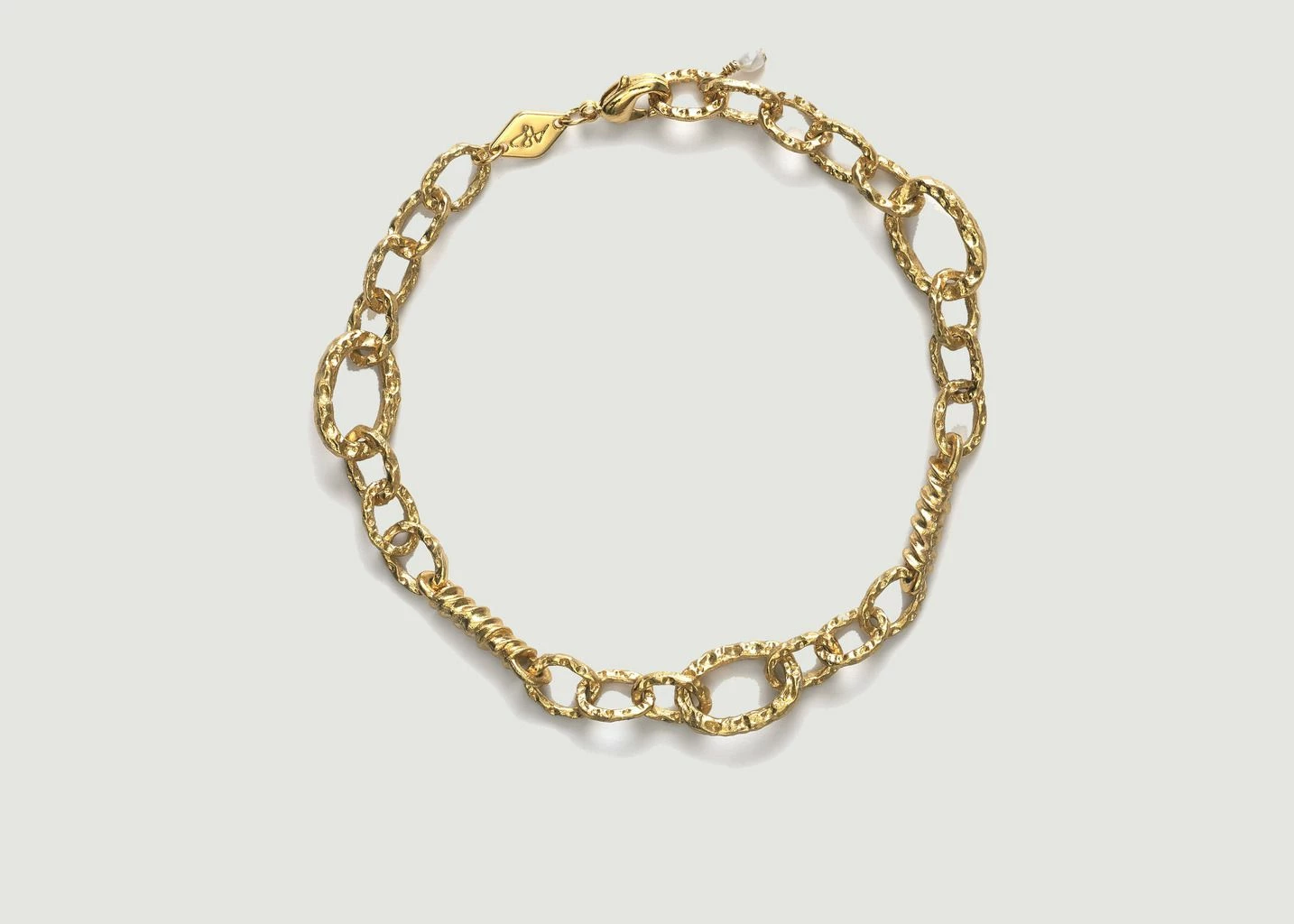 Bracelet made of 18 carat gold-plated brass with a freshwater cultured rice pearl. Adjustable jewellery, maximum length 20 cm. We fall in love with this bracelet signed Anni Lu, we appreciate its chain looking like an old anchor chain, surrounded by the ocean and covered with gold, it is a piece for the daring!