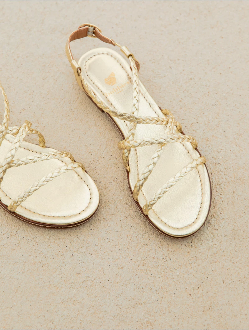 Artemis Gold Platinum flache Ledersandalen von Bobbies Paris