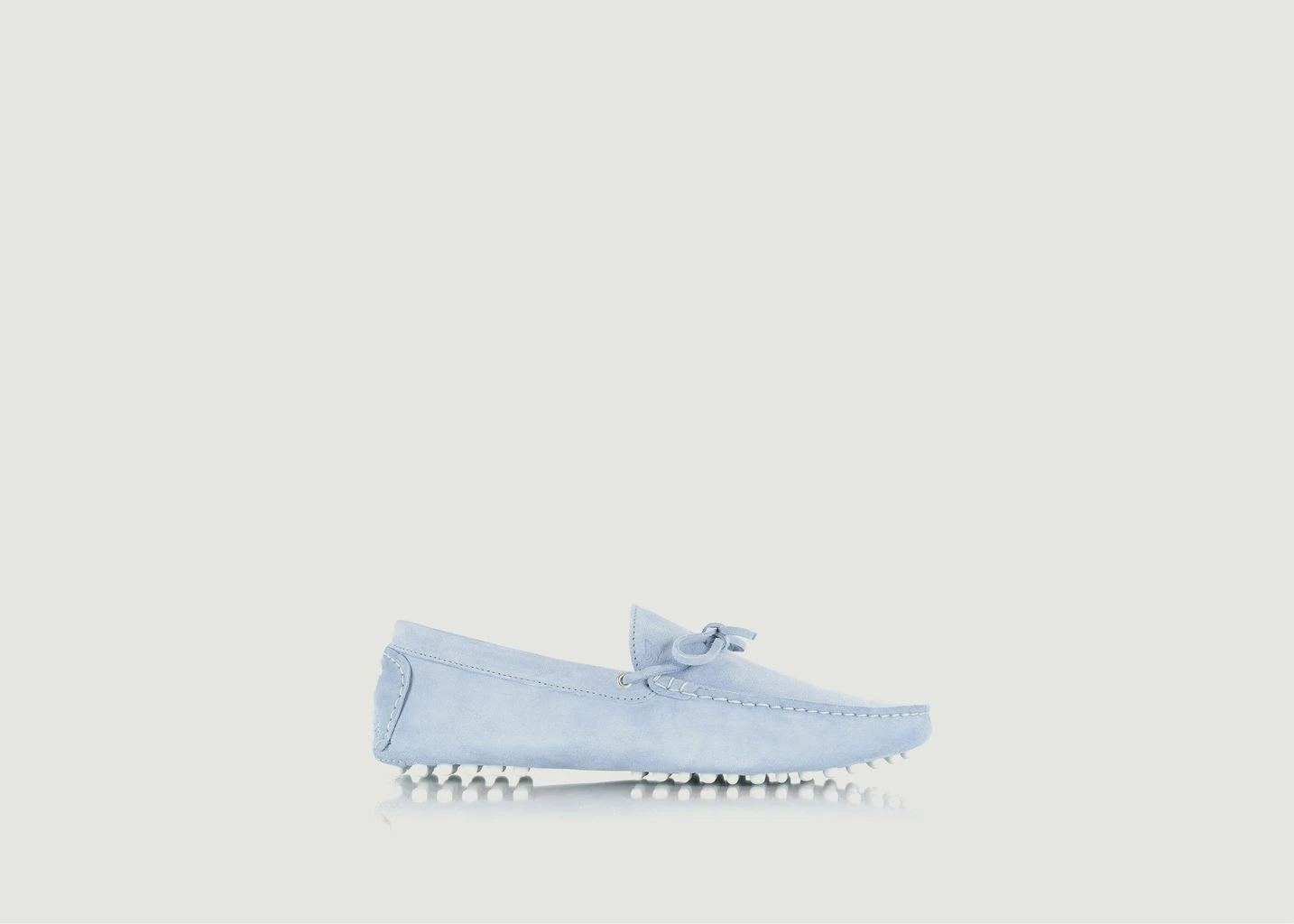 Handcrafted denim blue moccasins in suede leather from Italy, tonal lace tied on the top and small embossed logo, contrasting logo embroidered on the heel, leather lining, rubber sole with the brand’s signature spikes. Adopt without hesitation the Ayrton loafers from Bobbies ! These casual-chic shoes will be worn all summer long with your jeans, chinos and shorts.