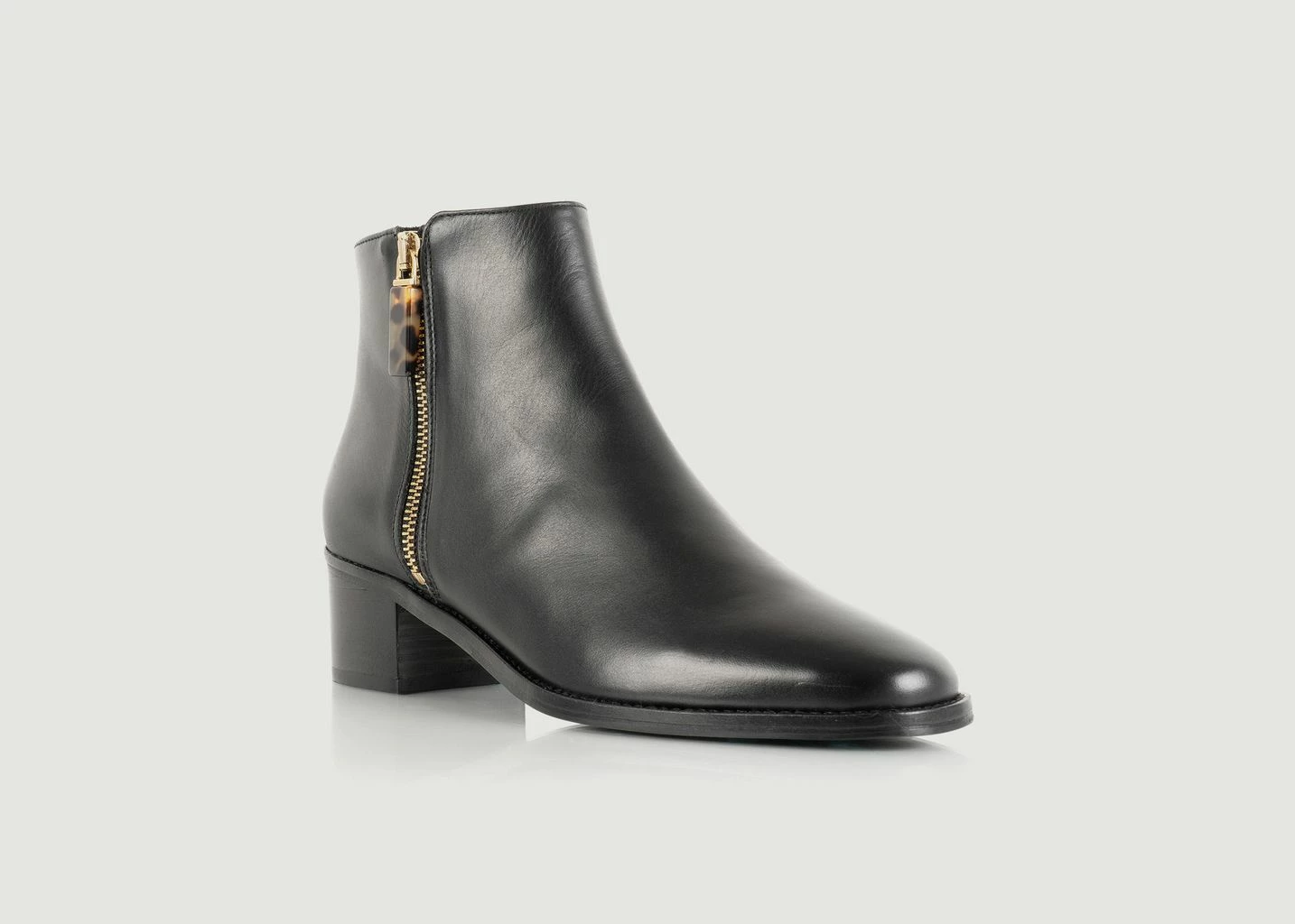 Black Italian leather heel boots. Featuring leather lining, leather soles and 4.5 cm wood grain leather wrapped heel. Handmade in Portugal. Delivered with its travel pouch, in a paper box from FSC certified forests. Bobbies presents the Charlie boot for this new collection. It is trendy and stands out with its intense black leather. We like its discreet golden details. Wear it in all seasons and in all circumstances, with jeans or a more dressed up outfit.