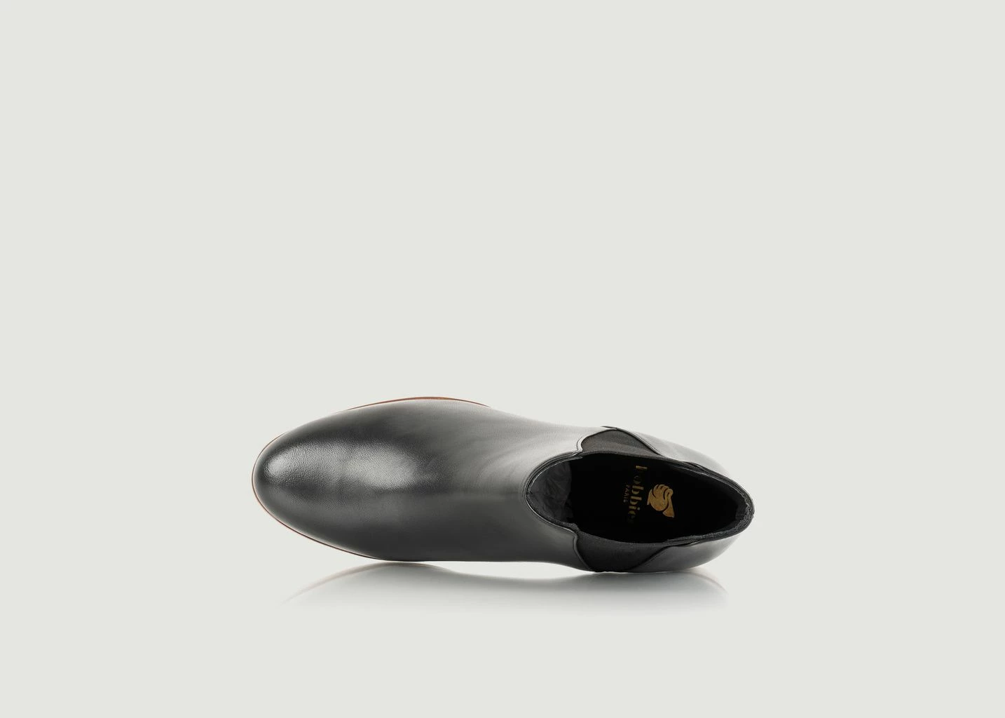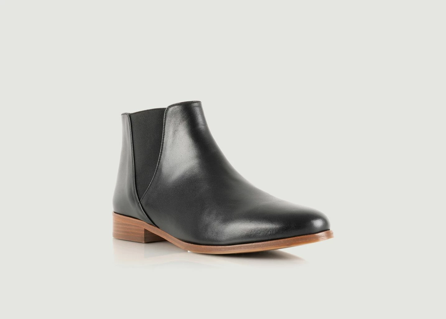 Black smooth leather Chelsea boots with rounded toe. Elastic side gussets. Cowhide leather outsole, 2.5 cm high flat laminated heels. The classic boot par excellence. We love the contrast in material and colour between the smooth black leather and the brown heel. With its simple lines and elegant color, this La Londonienne model will be easily worn everyday, with jeans or a casual dress.
