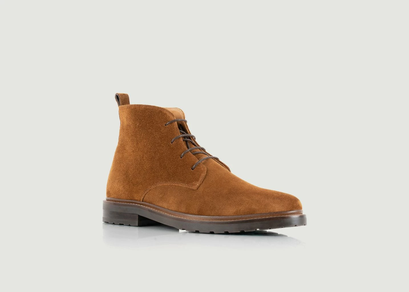 Tobacco coloured Italian suede heel boot. Leather lining, ultra resistant coron axé laces and Blake stitched rubber sole. Handmade in Portugal and delivered with its travel pouch, in a paper box from FSC certified forests. Don’t hesitate to adopt the Inglewood lace-up boots from Bobbies Paris. These timeless boots with their soft texture and warm color will be easy to wear and to match every day, with jeans as well as with dress pants.