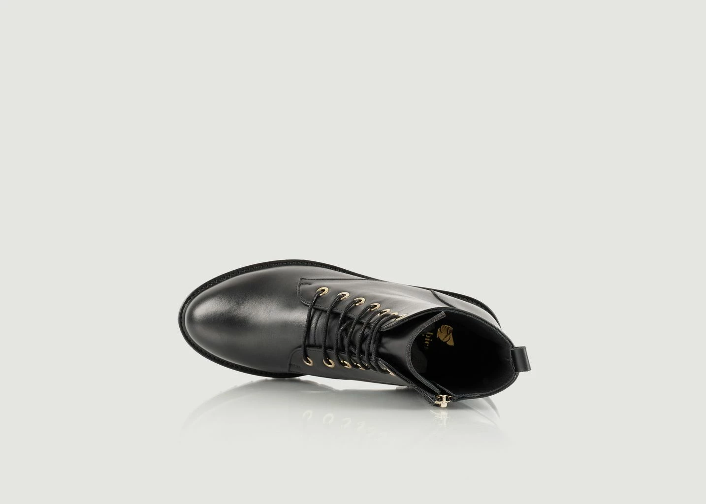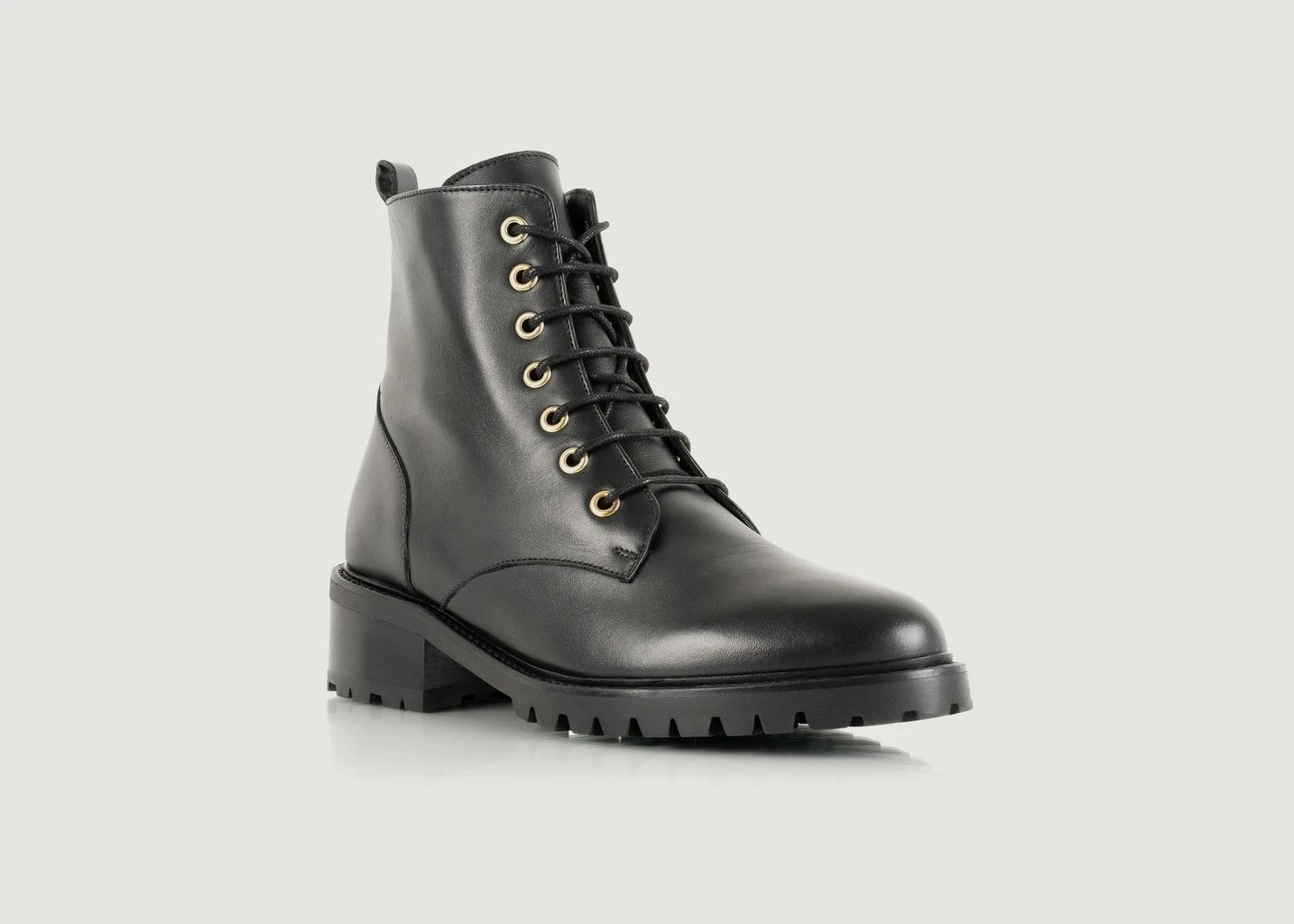 Lara boots in black Italian leather. With gold metal eyelets and a zip on the inside for quick slip-on. They have a leather lining, a rubber sole and a 4 cm heel. Handmade in Portugal. Delivered with its travel bag, in a paper box from FSC certified forests. Fall for this pair of classic and timeless Lara boots by Bobbies for this new collection. We like their intense black color which will match with jeans and a wool sweater as well as with a more summery outfit.