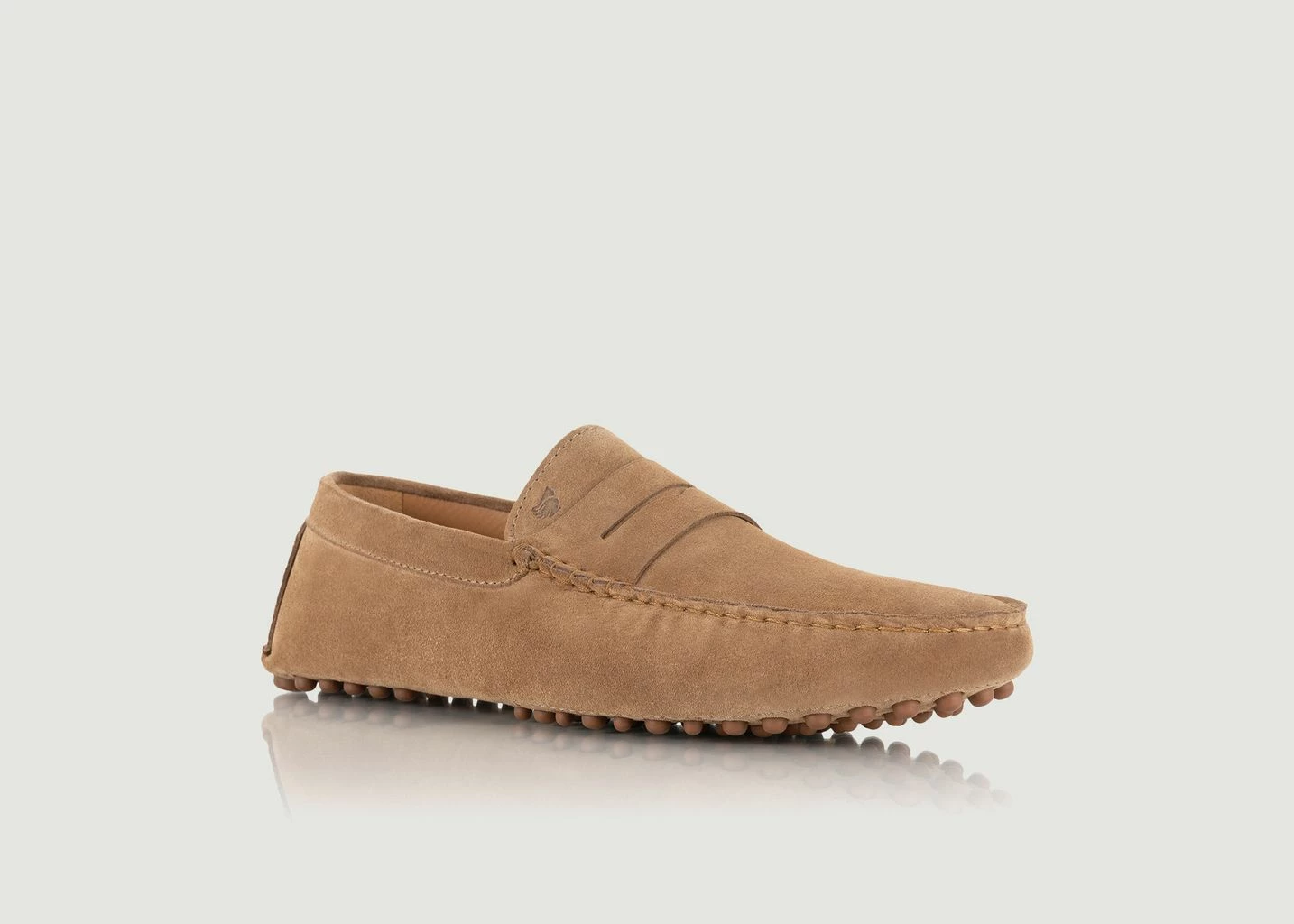 Lewis moccasins made of suede leather from Italy, brown color, handmade, leather lining, full rubber sole, Bobbies identity. Delivered with their travel pouch, in a paper box from FSC certified forests. Moccasins are part of the essential shoes of the male wardrobe. Adopt the Bobbies Lewis loafers without hesitation! These timeless shoes in sober colours can easily be worn every day, with jeans, shorts or chino pants.