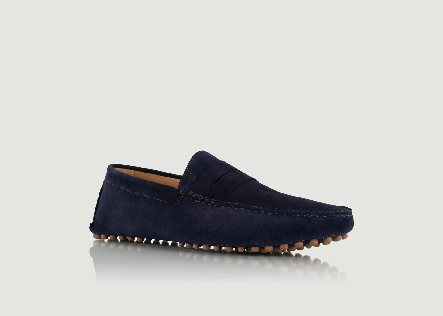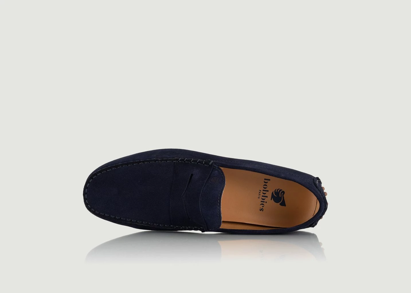 Lewis loafers in suede leather from Italy, navy blue color, handmade, leather lining, solid rubber sole with Bobbies’ signature pimples, delivered with their travel bag, in a paper box from FSC certified forests. Loafers are part of the essential shoes of the male wardrobe. Don’t hesitate to adopt the Lewis loafers by Bobbies! These timeless shoes in sober colours can easily be worn every day, with jeans, shorts or chino pants.
