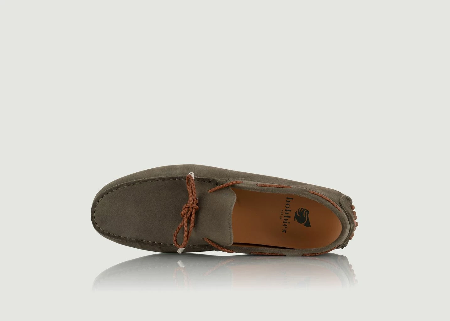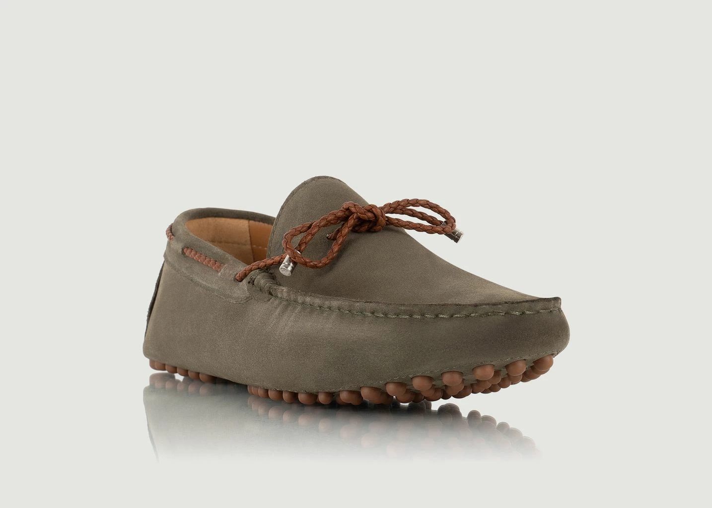 Khaki suede loafers from Italy, brown leather laces with metal tips, embossed logo on the front and embroidered logo in brown on the heel, leather lining, solid sole with contrasting rubber studs, the brand’s signature. Handmade shoes. Moccasins are one of the essential shoes of the men’s wardrobe. Don’t hesitate to adopt the Lloyd loafers by Bobbies! These timeless shoes in sober colors can be easily worn everyday, with jeans, shorts or chino pants.