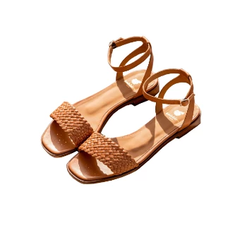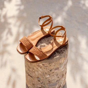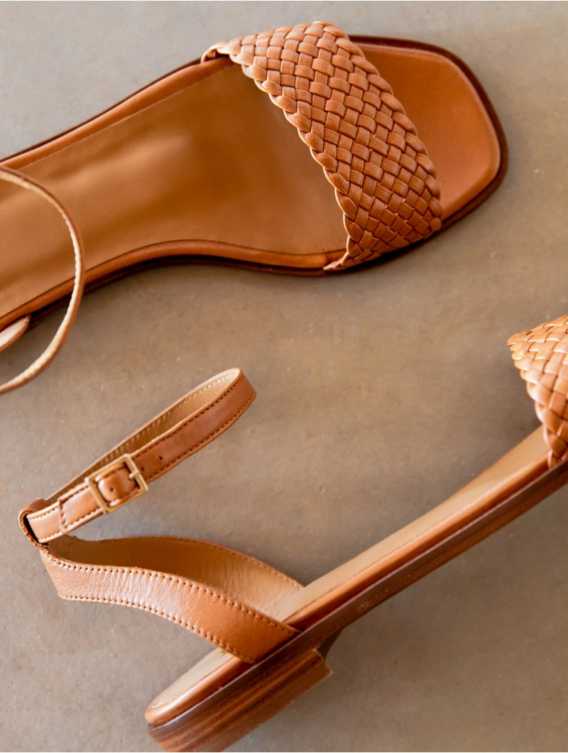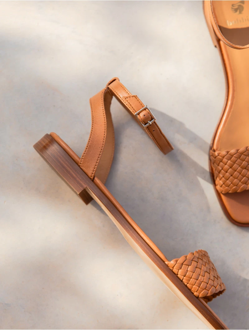 Suzanne Summer Camel flache Ledersandalen von Bobbies Paris
