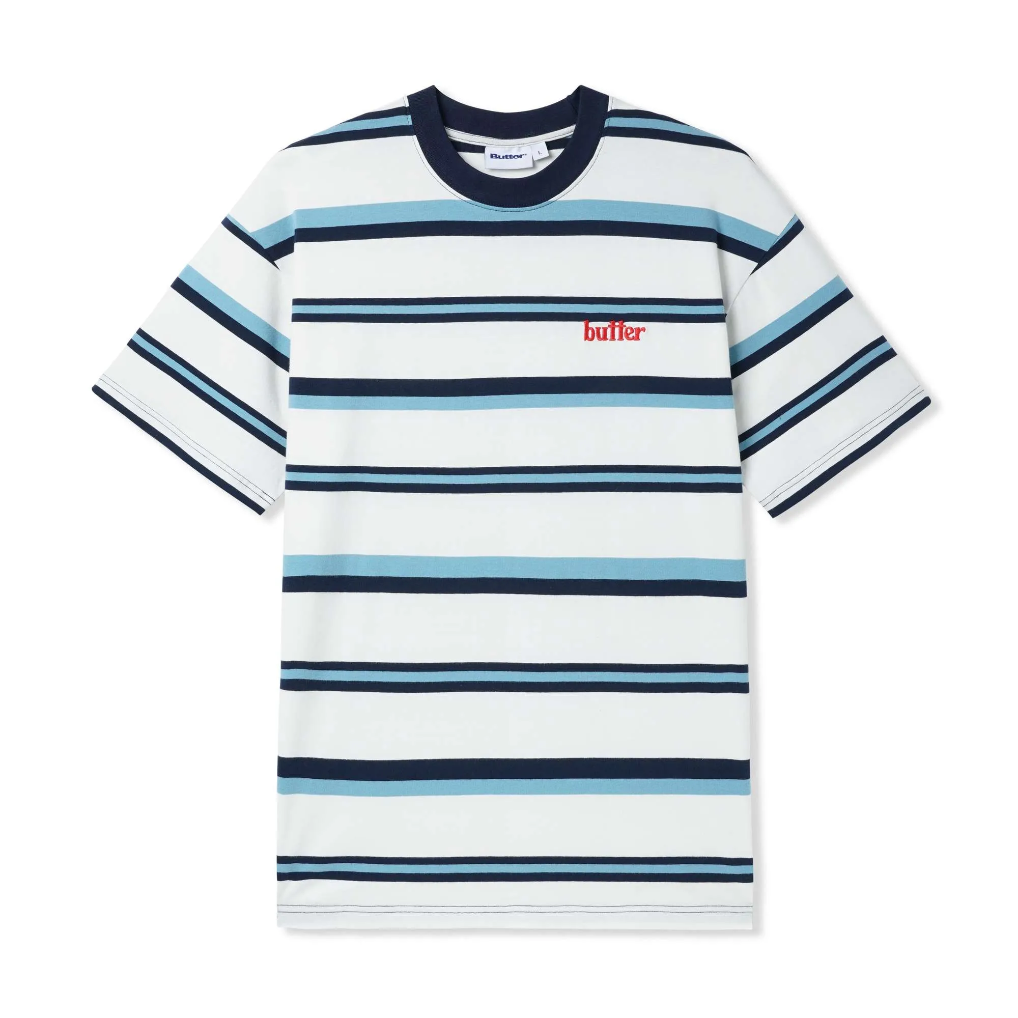 Butter Goods Camiseta Base Stripe Tee White Navy Blue L