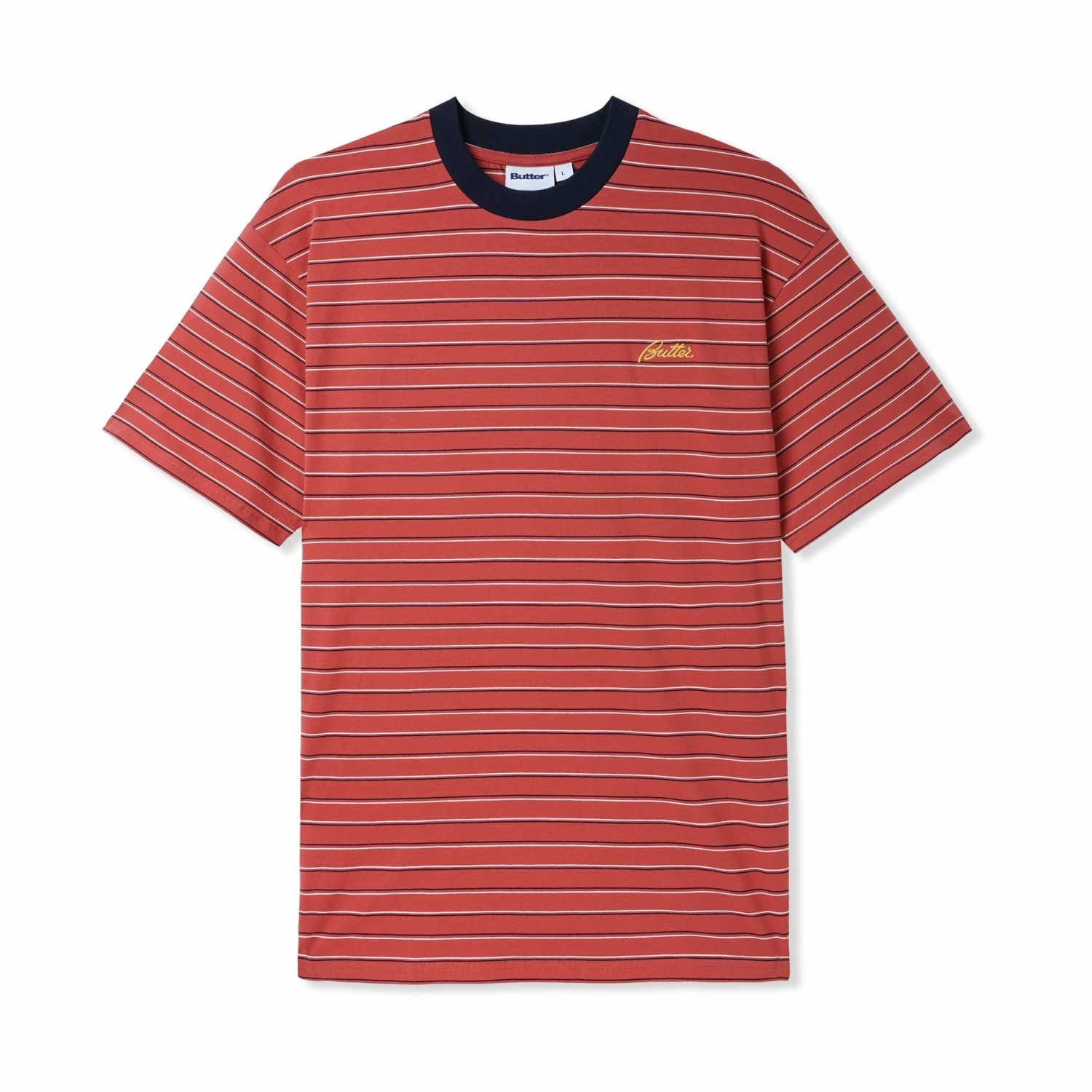 | Product options | Camiseta Butter Goods Cliff Stripe Tee Rust – L, Camiseta Butter Goods Cliff Stripe Tee Rust – XL |