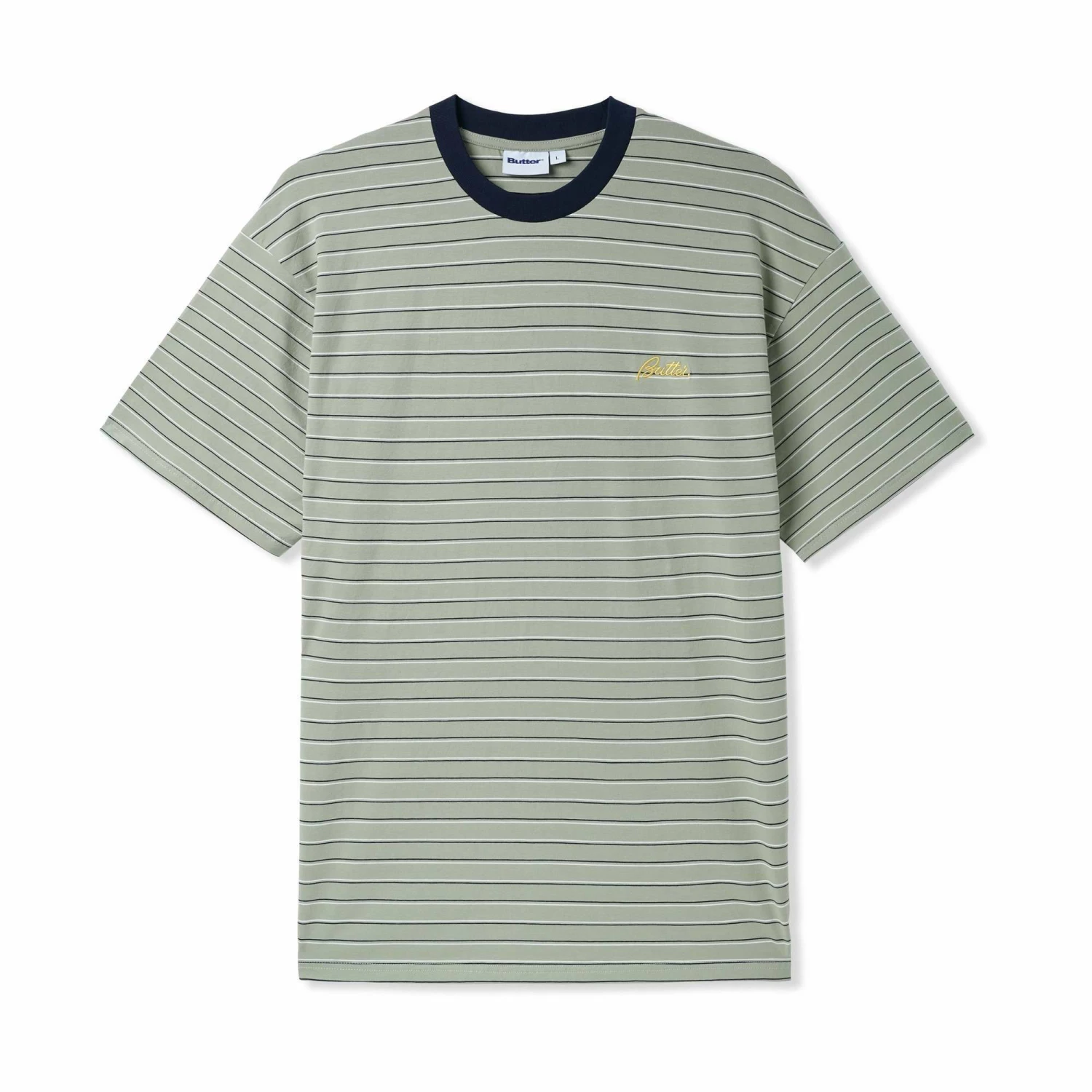 Talla: M-Tee Shirt Butter Goods Cliff Stripe Sage 95% Cotton / 5% Elastane Heavyweight stripe t-shirt Embroidery on breast Contrast ribbed collar