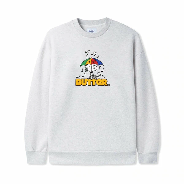 Butter Goods X Peanuts Umbrella Embroidered Crewneck Sweatshirt – Ash Grey