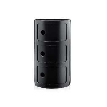 Modular elements were designed to meet various needs and to fit into any room in your home: bathroom, bedroom, kitchen or living room. The design solution that animates the Modular system is the elementary and solid vertical overlapping of interlocking single pieces to create practical storage furniture. Available round and square, Modular pieces can be rested on wheels. Flexible, functional, practical, Modular pieces have been in production for almost forty years and have received a great deal of recognition for the project’s significance and innovation (they can be found on display at the Museum of Modern Art in New York and at the Centre George Pompidou in Paris).