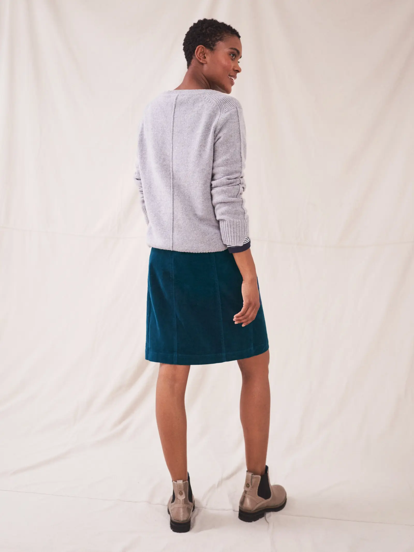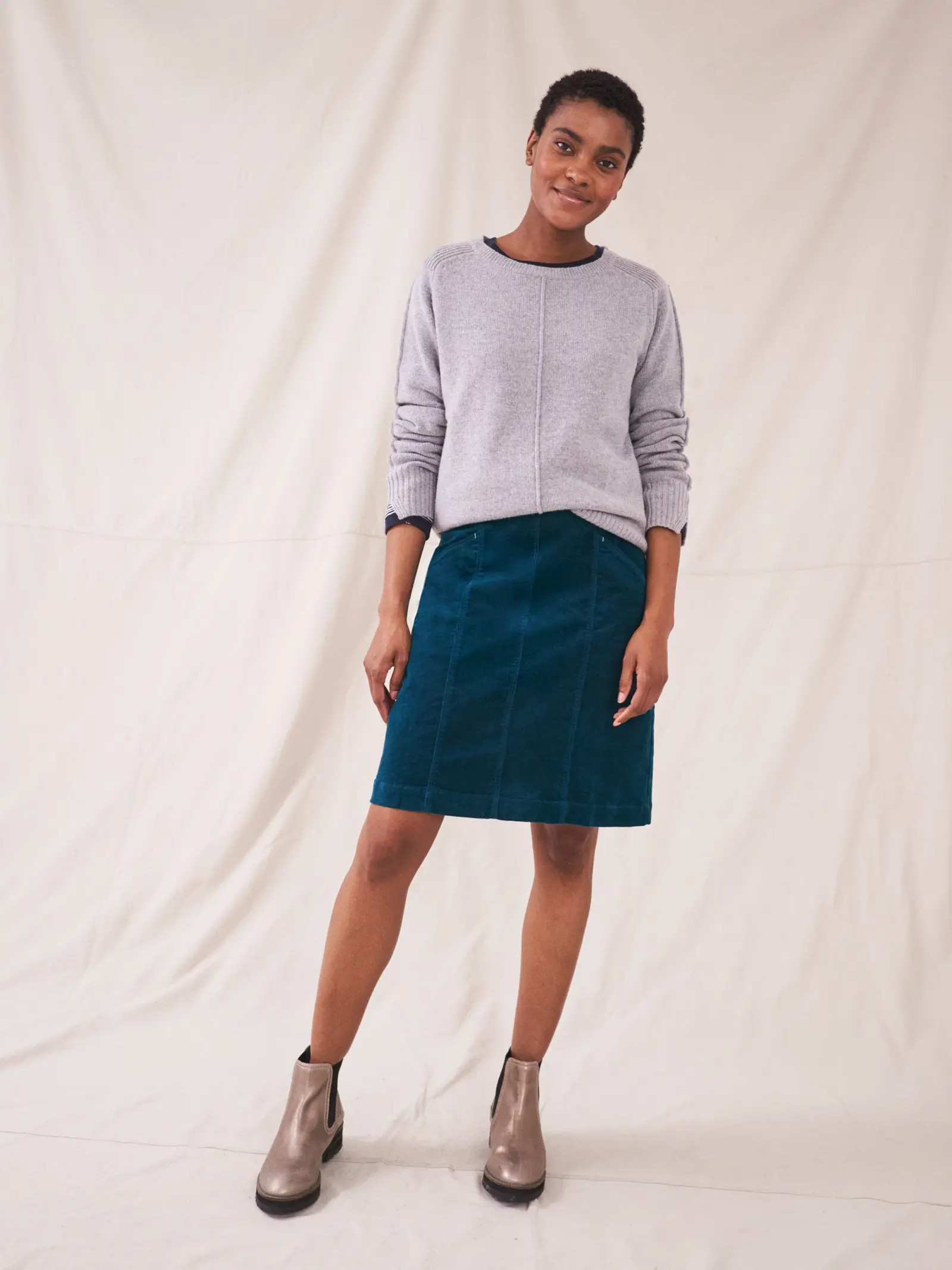 Cord skirt. Soft, sustainable and stylish. Good things come in threes. *Pockets 98% Cotton, 2% Elastane, Lining: 100% Cotton Size 12 centre back waist to hem approx. 55cm Machine Washable Colour: DK TEAL Women’s General Size Guide UK UK EU DE US BUST WAIST HIPS 6 XS 34 32 2 31 in/ 78 cm 23 in/ 58 cm 34 in/ 86 cm 8 S 36 34 4 33 in/ 83 cm 25 in/ 65 cm 36 in/ 91 cm 10 S 38 36 6 35 in/ 88 cm 27 in/ 70 cm 38 in/ 96 cm 12 M 40 38 8 37 in/ 93 cm 29 in/ 75 cm 40 in/ 101 cm 14 M 42 40 10 39 in/ 98 cm 31 in/ 80 cm 42 in/ 106 cm 16 L 44 42 12 41 in/ 103 cm 33 in/ 85 cm 44 in/ 111 cm 18 L 46 44 14 43 in/ 108 cm 35 in/ 90 cm 46 in/ 116 cm 20 XL 48 46 16 45 in/ 114 cm 37 in/ 96 cm 428 in/ 122 cm 22 XL 50 48 18 47 in/ 120 cm 39 in/ 102 cm 50 in/ 128 cm