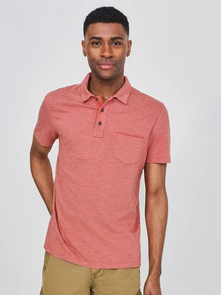 A stripy 100% organic cotton polo. Soft, sustainable, stylish. 100% Organic Cotton Model wears a size M and is 6′ 3″/191cm Size L high shoulder neck point to hem approx. 73cm Short Sleeve Machine Washable Colour: MID CORAL Men’s General Size Guide UK WAIST CHEST XS 30 in/ 76 cm Up to 34 in/ 86 cm S 32 in/ 81 cm 35-37 in/ 89-94 cm M 34 in/ 86 cm 38-40 in/ 96-101 cm L 36 in/ 91 cm 41-43 in/ 104-109 cm XL 38 in/ 97 cm 44-46 in/ 112-117 cm XXL 40 in/ 102 cm 47-49 in/ 119-124 cm XXXL 42 in/ 107 cm 50-52 in/ 126-132 cm