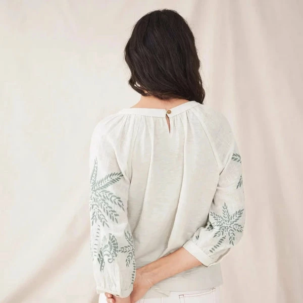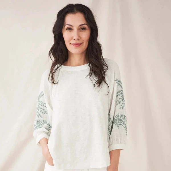 A floaty jersey top with embroidery on the sleeves and shoulders. Spring picnic-wear. Product ID: 435985 Main: 100% Cotton, Other: 89% Cotton, 7% Lyocell, 4% Viscose, Embroidery 100% Polyester Model wears a size 10 and is 5′ 9″/175cm Size 12 high shoulder neck point to hem approx 56cm 3/4 Sleeve Round Neck Embroidered Machine Washable Women’s General Size Guide UK UK EU DE US BUST WAIST HIPS 6 XS 34 32 2 31 in/ 78 cm 23 in/ 58 cm 34 in/ 86 cm 8 S 36 34 4 33 in/ 83 cm 25 in/ 65 cm 36 in/ 91 cm 10 S 38 36 6 35 in/ 88 cm 27 in/ 70 cm 38 in/ 96 cm 12 M 40 38 8 37 in/ 93 cm 29 in/ 75 cm 40 in/ 101 cm 14 M 42 40 10 39 in/ 98 cm 31 in/ 80 cm 42 in/ 106 cm 16 L 44 42 12 41 in/ 103 cm 33 in/ 85 cm 44 in/ 111 cm 18 L 46 44 14 43 in/ 108 cm 35 in/ 90 cm 46 in/ 116 cm 20 XL 48 46 16 45 in/ 114 cm 37 in/ 96 cm 48 in/ 122 cm 22 XL 50 48 18 47 in/ 120 cm 39 in/ 102 cm 50 in/ 128 cm
